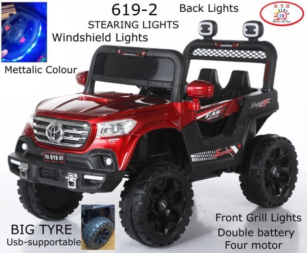🚗✨ This Toyota-style Ride-On Jeep brings luxury and adventure together for kids aged 1–6. Powered by a strong 12V battery and 4×4 motors, it offers smooth, comfortable driving. 🎮 Enjoy dual control with both manual drive and a remote for parents. With its premium painted finish, sturdy build, and stylish Toyota-inspired design, it delivers a safe, fun, and elegant riding experience for boys and girls. 👦👧🌟